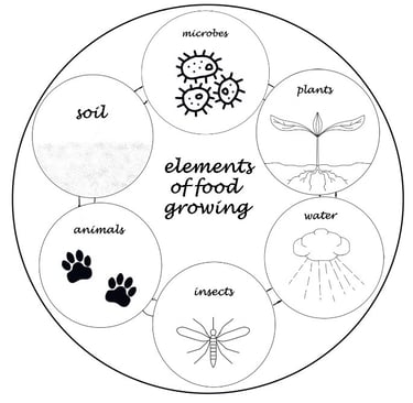 The way in which these elements are brought together into an interlocking whole depends on many things. The practical needs of the grower for food and income, the availability of water, seasonal variations that limit what and how much can be produced. It also includes the human resources that are available. Maybe help and support can be obtained by cooperating with other food growers as well as from the community for whom the food is being grown. Manifesting a particular philosophical or spiritual focus might also be important.