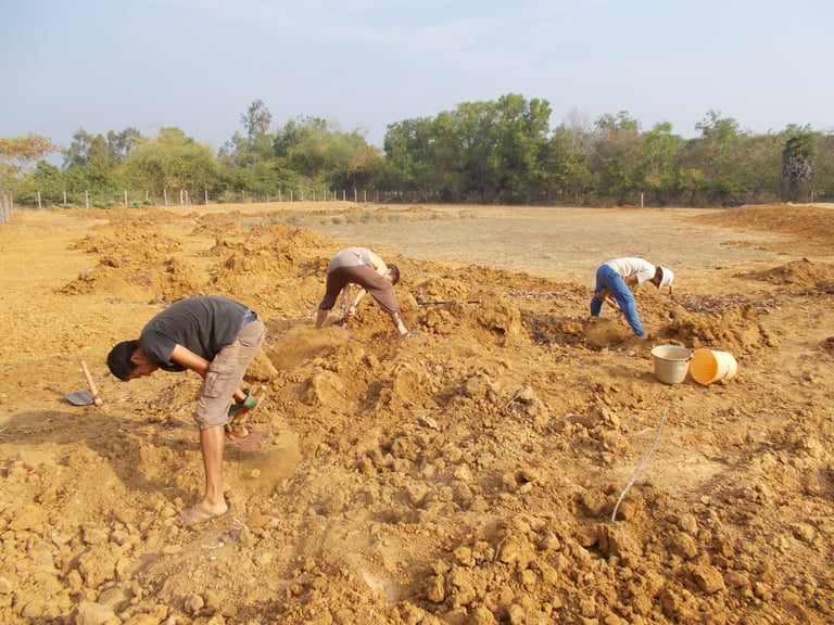 A group of people turned up from ATDC and Road Service and over two days mapped out where the road is going to go. At the same time Rajan went to the talk to the planners to discuss the possibility of moving the Buddha Garden activities affected by the road to the back of the farm. We are now waiting for the map that will show where the road is going to go. We will then create a map/proposal of how we would configure the farm on the back land of Buddha Garden. So that all the activities affected by the road and which have to move could go there. We are still waiting…….