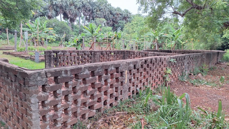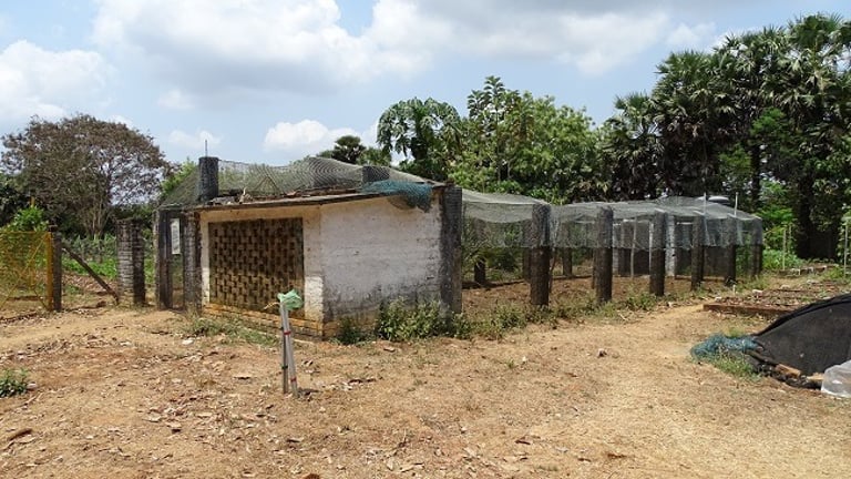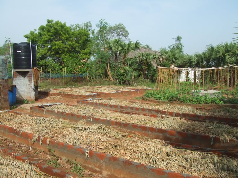 Buddha Garden started in January 2000 when Priya created a vegetable garden and a home for herself and two daughters on one and a half acres of what is now the neighboring Siddhartha Farm. After fencing the area, some fifteen vegetable beds were made. With the help of Arjun, a young Aurovillian, a range of seasonal local vegetables were grown which were distributed to various places in Auroville. During the next year, with the support of the Farm Group, the farm area was extended to include two newly purchased plots and in 2004 Buddha Garden Community Farm became independent.