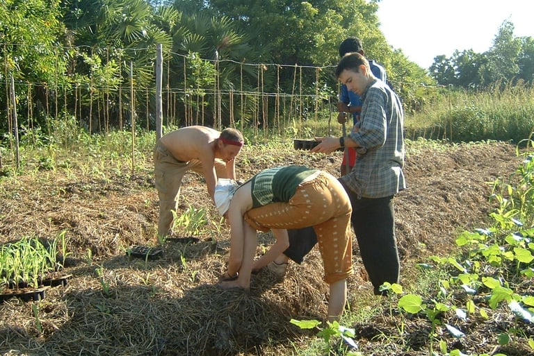 When I started Buddha Garden I had had very little experience of farming and my main learning has been through talking to other farmers and the day to day tasks of food growing. I found the land itself to be the most potent teacher. As the farm took shape and in the years that followed we had a wide range of people coming into Buddha Garden, wanting to know more about our farming activities, often so they could try something similar themselves when they returned home from Auroville. Increasingly we saw that Buddha Garden was a potent place of learning and over the 20 years of Buddha Garden’s existence we have had an apprenticeship scheme and various courses for students of all ages. Early on we started a farm helpers scheme and Buddha Garden is still a place where if you turn up when work starts (click here for work times) you can jump straight in and help with whatever needs doing. People from all the world have come to stay in Buddha Garden for a longer and deeper experience of our food growing (click here to find out more about staying in Buddha Garden) with some being inspired by their experience to create their own food growing projects in other parts of the world. For me, developing Buddha Garden and the daily work with the soil that this entails has been my spiritual practice as much as a practical farming project. For me has been a deeper than anything I have experienced studying spiritual texts or talking about spirituality with others.