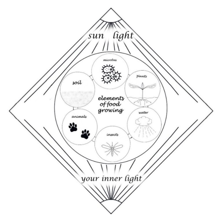 Understanding each of the elements, the natural processes that support them and how best to work with them is a lifelong learning process There will always be more to learn-- from books, internet, teachers and other farmers, but the most profound learning is rooted in the practical food growing process. The sum of this learning is what I call “the inner light”. The sum of our evolving knowledge, understanding and awareness about the best way to grow food in our place at any one time. It balances the outer light of the sun under which we grow food in Buddha Garden. We work to sustain the earth as the earth sustains us.